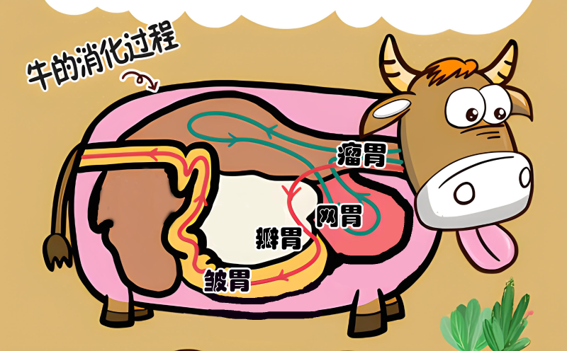 瘤胃是牛四个胃中大的胃,它的主要作用是【发酵】。瘤胃中存在着大量的微生物,牛吃进去的食物,会先在瘤胃中被微生物初步分解,将植物细胞壁中的纤维素被分解成糖分,细胞中的营养物质得以释放出来。